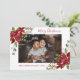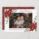 Esta tarjeta de vacaciones Navidad presenta un diseño de poinsettia acuarela con un tipo de letra de guión moderno. Personalízalo con tu propia foto y texto.