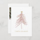 Una minimalista tarjeta de felicitación para navidades de fotografía familiares. Esta tarjeta de vacaciones incluye un sencillo árbol de navidad rosa y dorado en la parte delantera con una foto familiar en la parte trasera de la tarjeta. La foto es sólo con fines de colocación y puede ser reemplazada por cualquier foto. Se puede personalizar todo el texto.