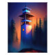 Esta impresionante imagen nocturna captura la belleza y la magia de una torre rodeada de árboles. Los colores suaves y los tonos suaves crean una sensación de paz y tranquilidad, mientras que el ambiente misterioso invita al espectador a explorar los secretos ocultos del bosque.