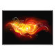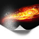 Una brillante pluma de pavo real hecha de fuego y llama sobre fondo negro.