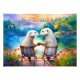 ¡Celebra el amor duradero con esta pintura acuarela encantadora! Dos nutrias, con su pelo tocado con la edad, se sientan en un muelle con vistas a un tranquilo lago. Manteniéndose de la mano y mirando a los ojos, las nutrias expresan un amor que trasciende el tiempo. La frase caprichosa "Estoy tan feliz que tenemos a cada una de las otras" captura la esencia de su vínculo. Esta deliciosa obra de arte es perfecta para los amantes de los animales, los románticos y todo aquel que aprecie la belleza del amor duradero.
