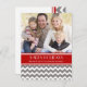 Felices vacaciones Navidades personalizados postales de fotos en rojo contemporáneo, carbón oscuro gris y blanco retro y divertido zigzags chevron zigzags patrón, elegante y simple con texto elegante. Desee a su familia y amigos lo mejor de esta temporada de vacaciones con esta divertida postal.