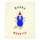 Poster con monstruo azul feliz sobre fondo beige