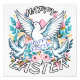 ¡Feliz Pascua! con una alegre y colorida imagen de primavera, con palomas y flores.