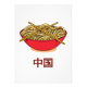 Noodles chinos en un estilo vintage con una huella de tazón rojo.