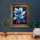 Sumérjase en la belleza etérea de esta fascinante obra de arte floral. Los pétalos delicados, pintados en vivos tonos azules y rosas, bailan con el telón de fondo de medianoche. Este hipnotizante artículo es una perfecta incorporación a cualquier hogar moderno, aportando un toque de serenidad y elegancia.