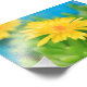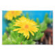 Fotografía de una alegre flor suculenta amarilla contra un fondo azul turquesa.