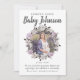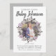 Una moderna invitación de embarazo con flores de flores de cerezo y trébol. Se puede añadir una foto de maternidad al centro de la corona floral. ================================================================================================================================================================================================================================================================
