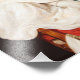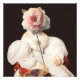 Remix de pintura vintage de una mujer con un vintage vestido blanco con mangas infladas sosteniendo una flor de peonía sobre un palo.