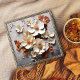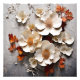 Esta fascinante obra de arte muestra la belleza perdurable de la naturaleza. Flores blancas y delgadas con hojas naranjas vibrantes empujan las grietas de una pared acristalada, simbolizando esperanza y perseverancia.