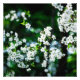 Flores de cerezo blanco contra el fondo de hojas verdes frescas. Primavera en la Ciudad Esmeralda. Impresiones y regalos para diversión y buen humor.