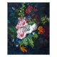 Flores de verano coloridas y multicolores florecientes sobre fondo azul oscuro.