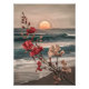 Captura la serenidad de una puesta de sol costera con esta impresionante pintura floral. Las vibrantes flores rojas y blancas en el fondo del cielo dorado y las tranquilizantes olas crean un ambiente tranquilo y acogedor. Esta pieza seguramente le añadirá un toque de encanto costero a cualquier casa.