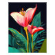 Haga una declaración con este diseño floral audaz y hermoso. Con sus vibrantes flores rojas y rosadas sobre un fondo negro dramático, este llamativo artículo le dará un toque de glamour a cualquier habitación.