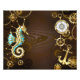 Foto Fondo de madera con caballito de mar mecánico