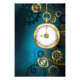fondo turquesa, texturado, de vapor punk con bronce y oro, llave de plata y reloj. Estilo Steampunk.