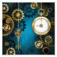 fondo turquesa, texturado, de vapor punk con bronce y oro, llave de plata y reloj. Estilo Steampunk.