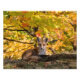 Un bonito y joven zorro se parece tranquilamente a su lugar de descanso con un fondo de color otoñal.