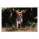 Parece que un zorro joven y lindo sonríe desde su oscuro escondite.