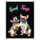 Niedliche französische Bulldoggen sind sehr verliebt. Die Bully Dame hat bunten Haarschmuck und zieht alle Blicke an. Sehr schöne und lustige Illustration von zwei tollen Hunden. Der Bully springt an seinem Freund hoch und möchte bestimmt spielen.Ein tolles Geschenk für jeden Tierliebhaber. Bulldoggen lieben das Abenteuerliche und genießen die Zeit mit Mensch und Tier.