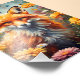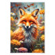 Ein hübscher kleiner Fuchs schaut dich an. Er sitzt zwischen Blumen und spielte mit Schmetterlingen.