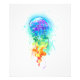 Grandes medusas de azulejo brillantes, de dibujos artísticos, con largos tentáculos en blanco, pintadas con fondo multicolor de acuarela. Mariscas arcoiris.