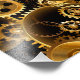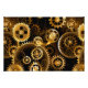 Sin soldadura, metalizado, latón, engranajes dorados sobre un fondo oscuro y oxidado. Estilo Steampunk.