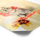 Foto impresa con el gatito de Meta Plückebaum con cinta roja (1876). Un gatito gris con rayas oscuras está bellamente adornado con una cinta roja. El gatito juega con una abeja. Las flores amarillas decoran el primer plano. ¡Un regalo maravilloso para los amantes del gato y del arte alemán!