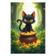 Entrar en un mundo de fantasía y magia con este encantador diseño, con un travieso gato negro encaramado triunfalmente en una olla de oro brillante. Rodeado de rocas de champán vibrantes y brillantes hojas de esmeralda, los ojos brillantes del gato y la piel elegante de tipo obsidiano crean un contraste sorprendente contra el cálido resplandor del oro. Capturando perfectamente la esencia de la suerte, la fortuna y la energía lúdica, esta imagen irradia una sensación de aventura y magia. Ya sea que esté celebrando el Día de San Patricio o simplemente encantado por una buena diversión, esta obra de arte aporta un toque de fantasía y maravilla a cualquier espacio.