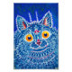 Imagen con la pintura animal de Louis Wain Un gato en estilo gótico (1860-1939). Un gato azul psicodélico mira amistosamente con ojos amarillos al espectador. Un regalo maravilloso para los amantes de los gatos y el arte inglés.