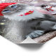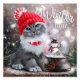 Foto Gato gris con gorra roja y muñeco de nieve con bol