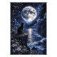 Una escena nocturna mágica de un gato negro sentado en un acantilado bajo una luna llena brillante que domina el océano. El cielo lleno de estrellas, las olas brillantes y la suave luz de la luna crean una atmósfera pacífica pero misteriosa donde la fantasía se encuentra con la naturaleza. Perfecto para los amantes de los gatos y los fanáticos de la decoración mística o celestial, esta encantadora obra de arte añade un toque calmante y mágico a dormitorios, salas de estar, espacios de lectura o estudios creativos, y hace un regalo único para cualquiera que ame los gatos, los paisajes iluminados por la luna y el arte de fantasía.