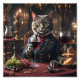 Un gato victoriano que disfruta de una copa de vino tinto con queso y uvas