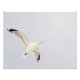 Una sutil imagen que muestra a una gaviota volando sobre un cielo tranquilo.
