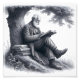 Traiga un encanto atemporal a tu espacio con este sereno ilustracion blanco y negro de un anciano leyendo tranquilamente bajo un árbol. Rodeada de libros y naturaleza, esta obra simboliza la sabiduría, la reflexión y la tranquilidad de la narración. Perfecto para bibliotecas, estudios o cómodos rincones de lectura, esta elegante pieza celebra el amor de toda la vida por los libros.