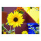 Esta composición de girasol brillante (Helianthus) contrasta con la terracota azul y oscura de la parte posterior.