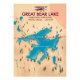 Hermoso estilo retro o vintage Gran Lago Oso, canadá, mapa de viajes afiche de arte poster impresión.