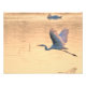 Grande aigrette s'envolant au coucher du soleil sur un étang.
