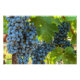 Una imagen de primer plano captura un cúmulo de uvas maduras, azul-violeta colgadas de una vid. Las uvas son plumas y jugosas, con una textura ligeramente difusa. Las hojas verdes exuberantes enmarcan las uvas, creando un contraste vibrante de colores. La imagen evoca una sensación de abundancia y la dulzura de la cosecha.