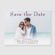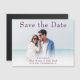 Foto moderna de pareja Wedding Salva el imán de la tarjeta de invitación de fecha con un tipo de letra borgoña.