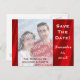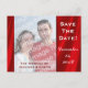 Añada fácilmente su propia fotografía al personalizar esta postal de invitación Guardar la fecha con hermosos bordes de satén rojo impresos. Añada los nombres de la novia y del novio y la fecha fácilmente para el próximo boda o ocasión especial. El texto en blanco y rojo se puede cambiar y personalizar fácilmente. Excelente para los próximos bodas, compromiso, El día de San Valentín y fiestas de aniversario, etc. ¡Buena forma de personalizar con una imagen!
