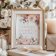 Guess How Many Candies Pink Baby Shower Sign features beautiful pink floral flowers and greenery along with modern calligraphy.