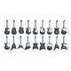 Guitarras negras y blancas, instrumentos de música de cuerdas acústicas, silueta de guitarra de rock eléctrico e iconos de guitarra de esténcil conjunto