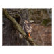 Un halcón de cola roja encaramado da una mirada hacia atrás sobre su hombro mientras muestra sus brillantes plumas de cola roja.
