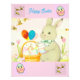 A fun photo of a cute bunny with a basket of Easter eggs. Designed in soft pastel colors bringing the magic of Easter to our young ones. A perfect gift for adorning the room of the kids