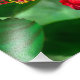 En esta impresionante imagen, una flor de hibisco rojo se realza con un fondo verde moteado.