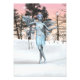 Representación digital en 3D de un hermoso hada de hielo en un fondo de bosque invernal