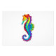 Arco de arcoiris, caballito de mar poligonal sobre fondo blanco. Tatuaje brillante.