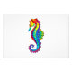 Arco de arcoiris, caballito de mar poligonal sobre fondo blanco. Tatuaje brillante.