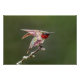 Un colibrí macho con rúbrica se estira mientras se sienta en su percha.